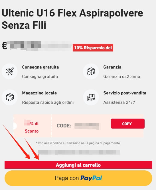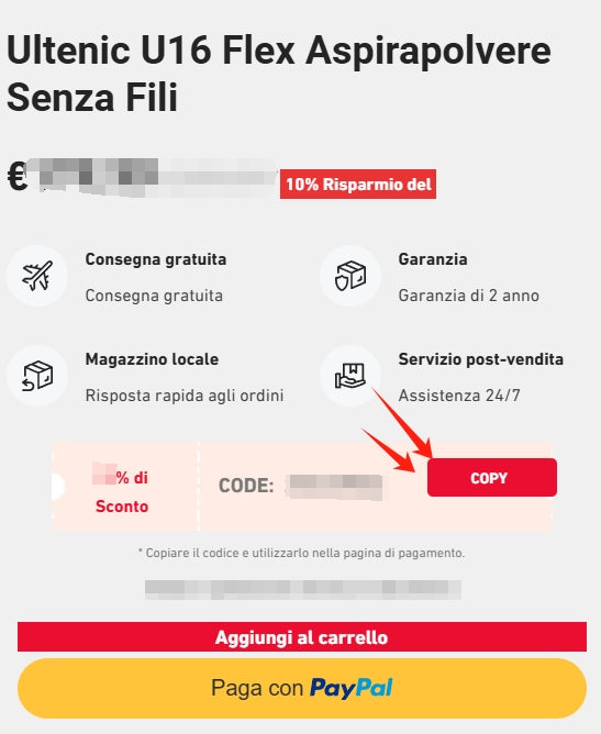 1. Apri la pagina dei dettagli del prodotto e clicca sul pulsante "Copia" per copiare automaticamente il codice del coupon.