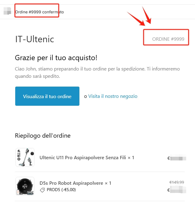 Option 2: Dopo aver completato con successo un ordine, ti invieremo un'email di conferma dell'ordine nella tua casella di posta, dove puoi trovare il numero dell'ordine.